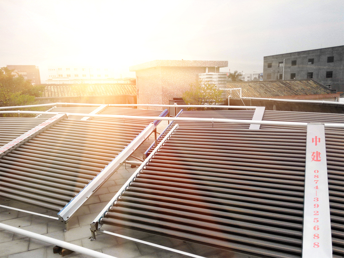 本系统是专为云南某医院设计生产安装的、晴好天气状况下日产120吨60度热水的太阳能热水系统。